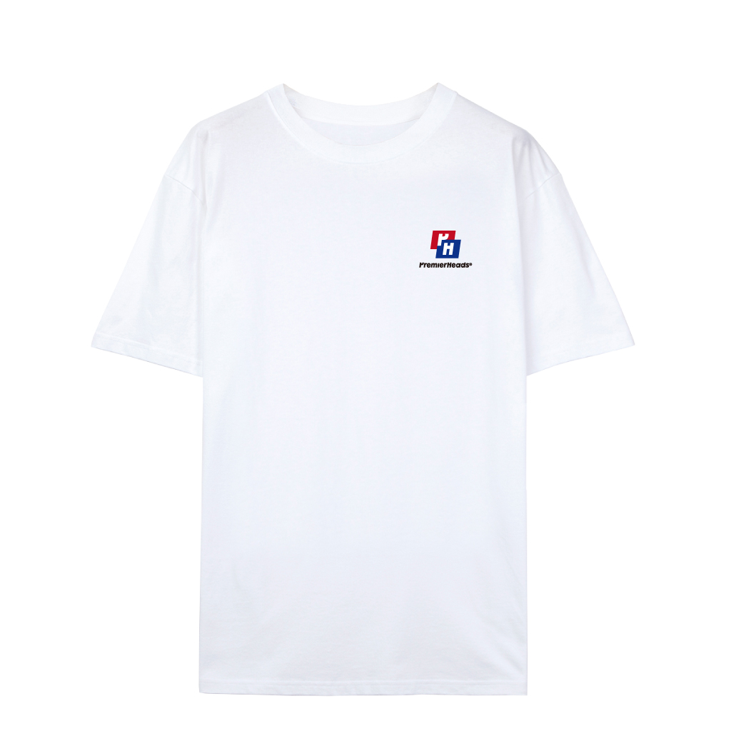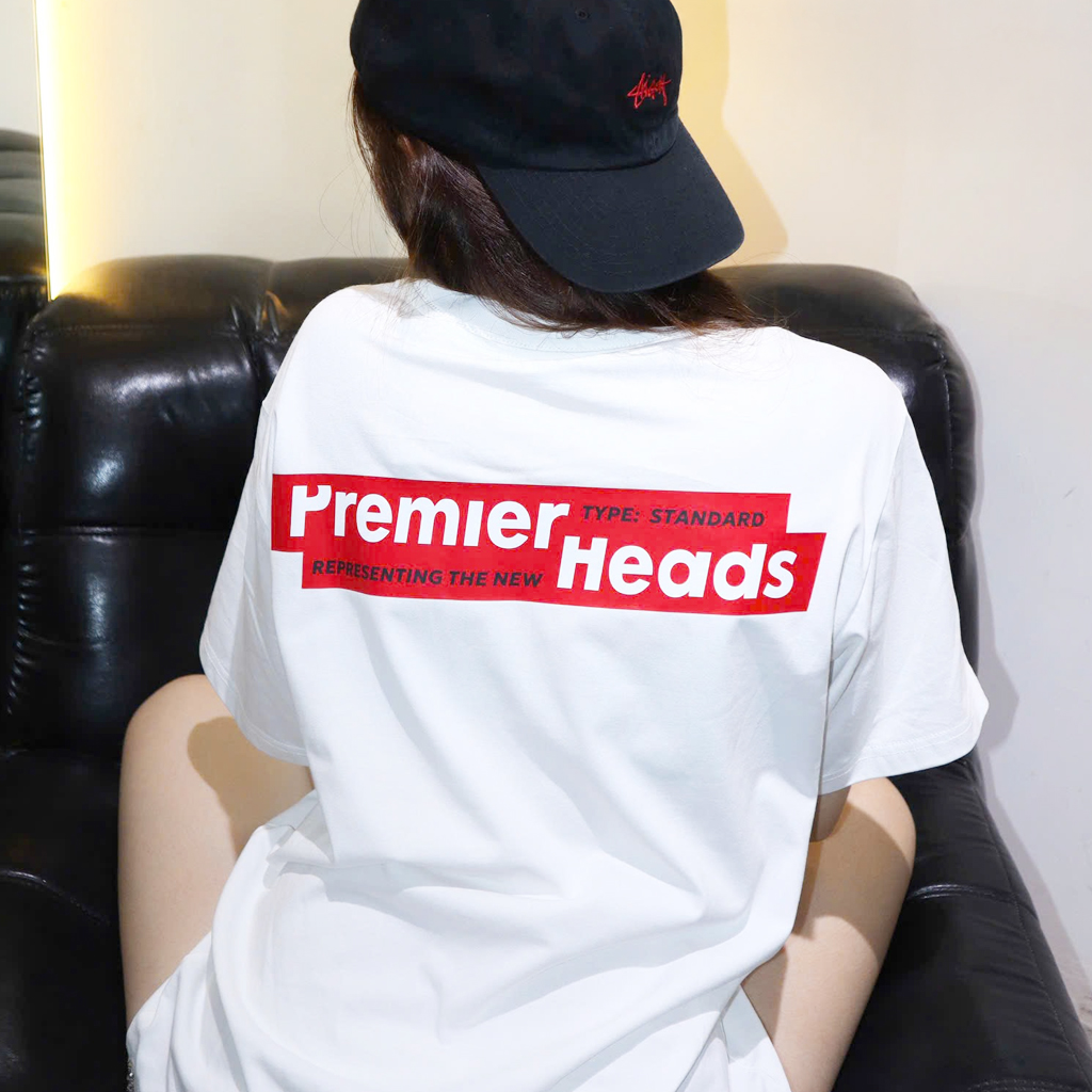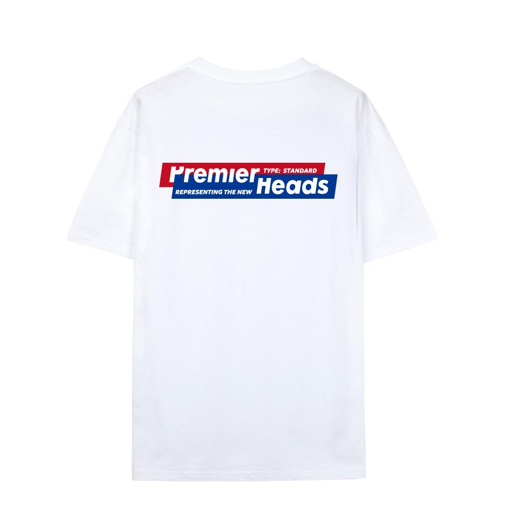 Mặt sau: Thiết kế mạnh mẽ với slogan Premier Heads in lớn, phối màu đỏ trắng tạo sự