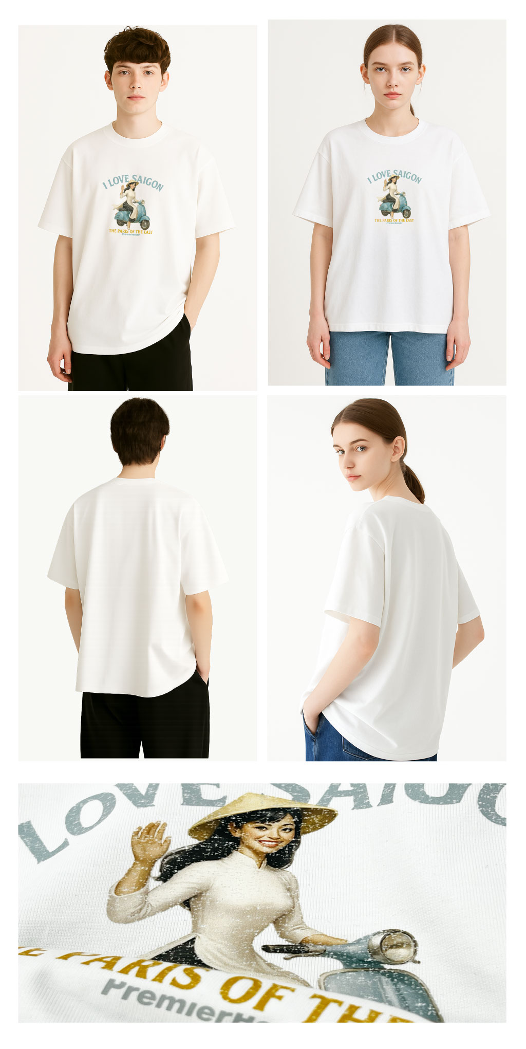 Form áo rộng rãi, màu cơ bản dễ phối đồ, kết hợp chi tiết in đậm chất graphic phù hợp
