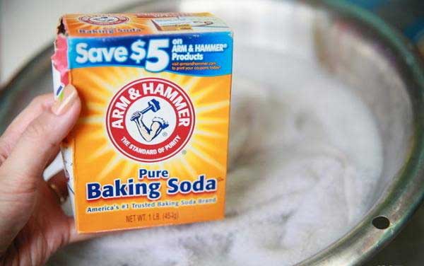 Baking soda có khả năng đánh bay vết ố vàng cực mạnh nên cần lưu ý liều lượng khi sử dụng loại nguyên liệu này. Baking soda thường được dùng để xóa vết bẩn ở nách áo hoặc những vùng vết bẩn cứng đầu. Ngoài ra, bạn cũng có thể trộn 1 muỗng canh baking soda với nước cốt chanh để tạo thành hỗn hợp nhão, dùng bàn chải đánh chà hỗn hợp lên chỗ bị bẩn, sau đó xả sạch lại bằng nước.