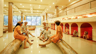 Với những phòng tắm xông hơi, bạn có thể lựa chọn phóng đá, phòng thạch anh… với các mức nhiệt độ khác nhau đã được ghi rõ ở ngoài cửa phòng. Xông hơi giúp bạn thanh lọc cơ thể, giải độc. Khi xông hơi, cơ thể ra nhiều mồ hôi, khiến bạn cảm thấy nhẹ người, khoan khoái và dễ chịu.